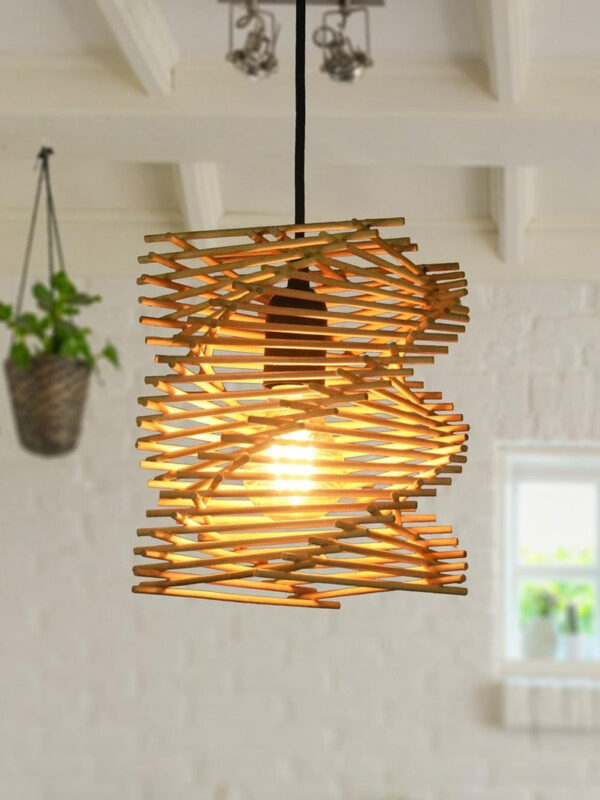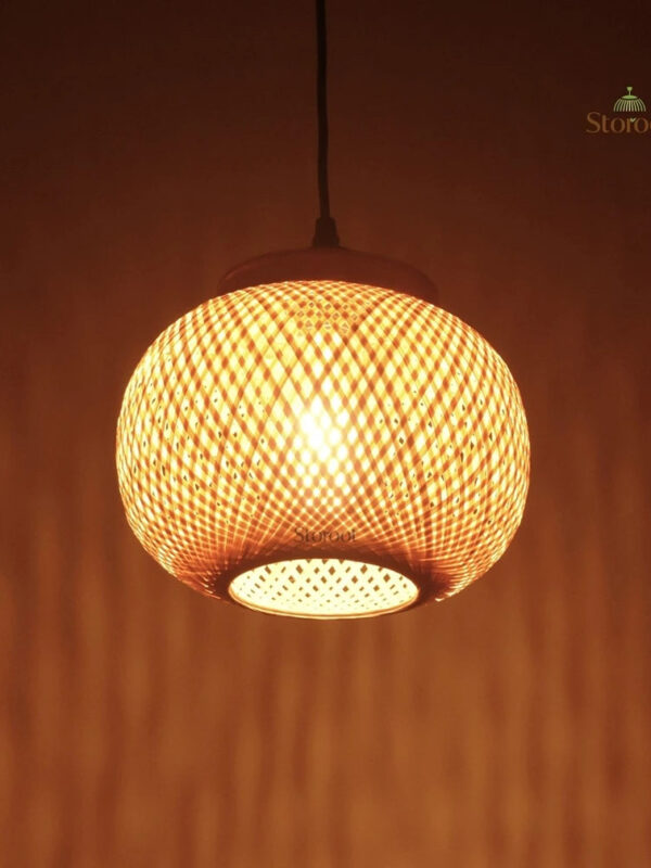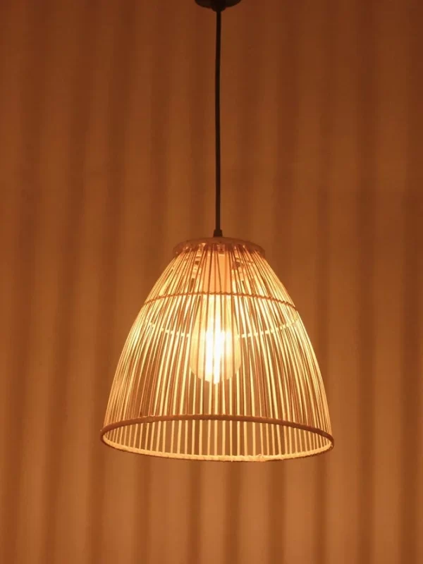 This Bamboo conical shape pendant light lamp is Handmade by skilled artisans from Kerala. Package includes One Bamboo lampshade+ 1m good quality wire+ E27 holder + Ceiling Cup and fitting screws