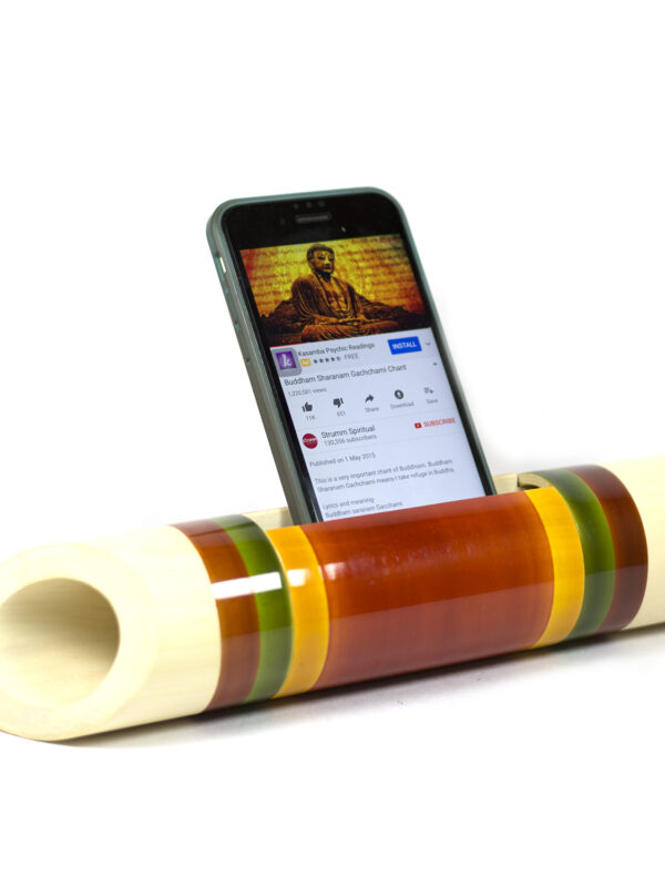 Acoustic bamboo speaker : Handmade sound amplifier enables you to share your music through passive sound amplification. Incredibly durable, renewable, and rich in tonal variation, bamboo and rattan bring a relaxed style to any area. Our passive amplifier is hand-made to create a unique and one of a kind look. Features 1) Eco-friendly from 100 per cent sustainable bamboo Speaker Amplifier 2) Stylish docking station and sound amplifier 3) Great for hands-free calls and skype 4) Gives your phone a natural companion 5) Ideal eco-friendly gift Bamboo is one of the most plentiful natural materials around, this speaker is just about as eco-friendly as you can get. No Bamboo Speaker will be the same, either, since each cut of bamboo will have unique markings and a different look. Either way, it’s an attractive device that we wouldn’t mind having on our bedside table. According to the Feng-Shui, the natural speaker will also increase the good luck of your desk, bedroom, or wherever you place it. Bamboo speaker dock that just so happens to be 100 percent green and uses no electricity whatsoever. It’s made from a single piece of bamboo, and holds your mobile device in place as it plays music to amplify the sound. Bamboo speaker is ideal to use around the house or garden / beach barbecues as well as camping trips. They are also great for amplified hands-free calls and skype Plus, the Bamboo Speaker is pretty damn beautiful, in both bamboo and black color flavors.