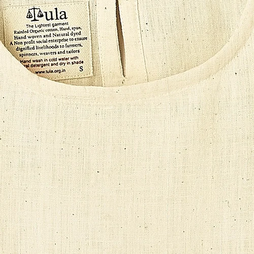 Round Neck, High Low hem top with Half Sleeves and back opening. Made from rainfed organic cotton which is handspun, handwoven and naturally dyed.