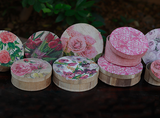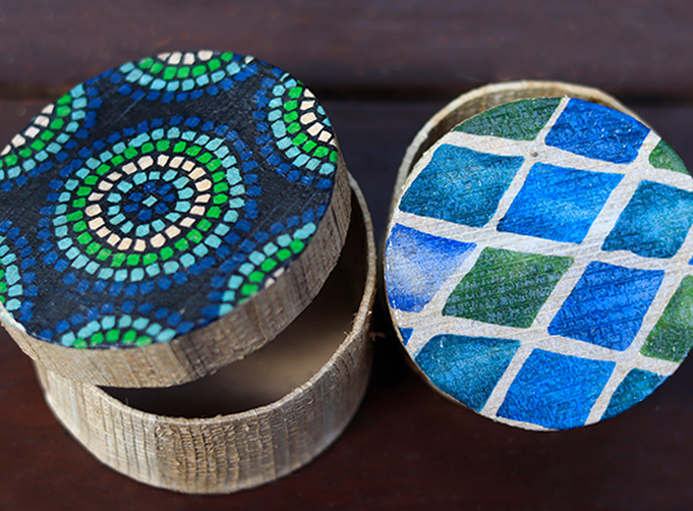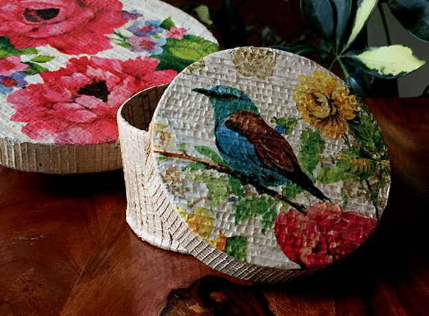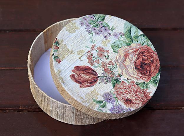 • The decoupage technique is used to create various quirky designs on the lid and the bottom part of the box