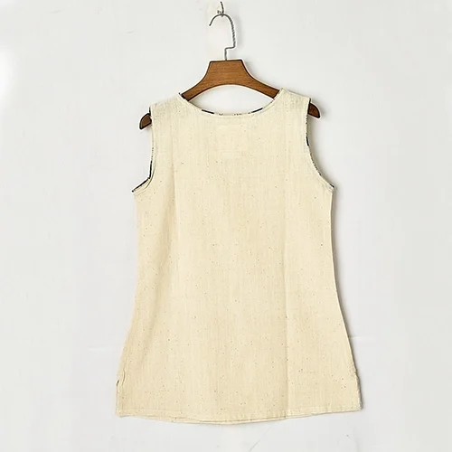 Sleeveless Short Top With Front Key Hole Opening and contrast kalamkari piping. Made from rainfed organic cotton which is handspun, handwoven and naturally dyed.
