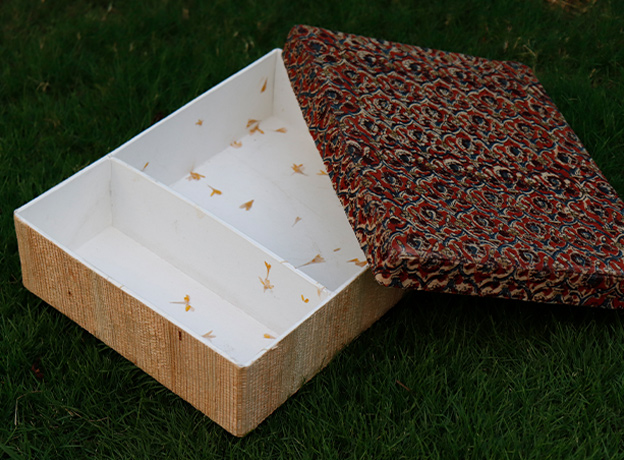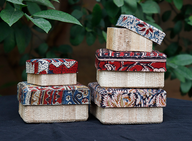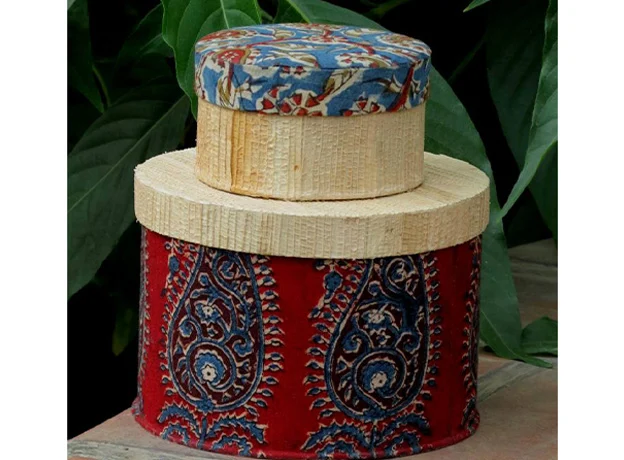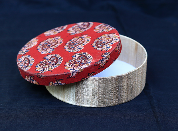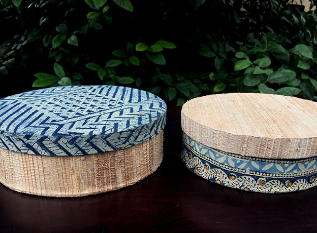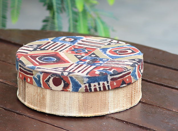 - The lid/bottom is made of upcycled fabric, and the other part is entirely made in dried banana stem