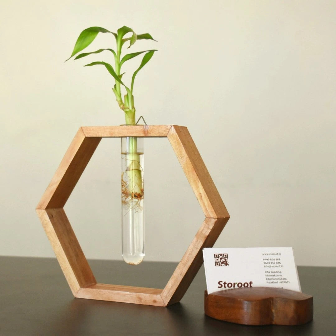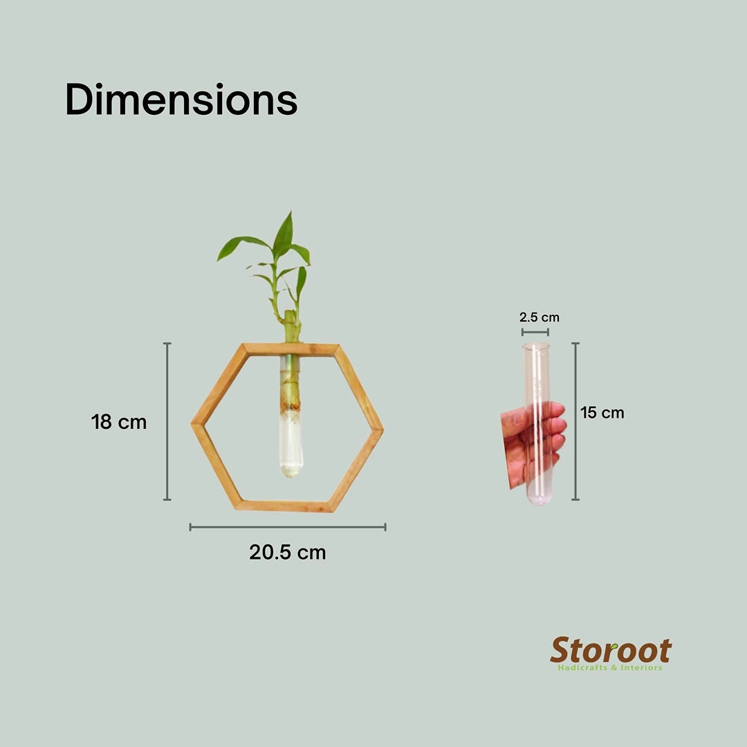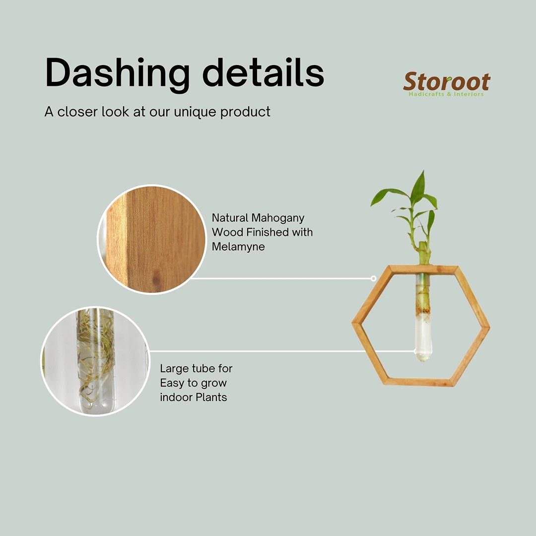 Elevate your interior with the Honeycomb Wooden Wall Hanging Planter. Expertly handcrafted from rich mahogany wood, this planter features a sleek glass test tube that creates the illusion of a floating plant on your wall. Perfect for growing small plants or displaying single-stem flowers, this wall hanging planter combines modern design with natural materials. Easy to mount using the included sawtooth hanger, it’s an ideal addition to any living space, office, or a thoughtful gift for plant enthusiasts. Transform your walls into a living art piece with this stylish and eco-friendly decor.