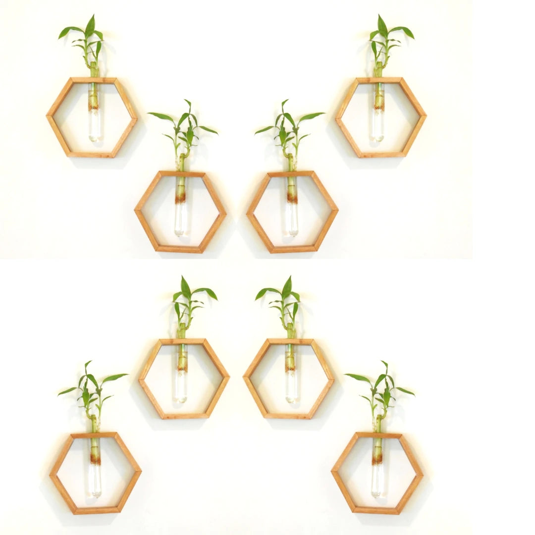 Honeycomb Wooden Wall Hanging Planter – Floating Mahogany Test Tube Decor