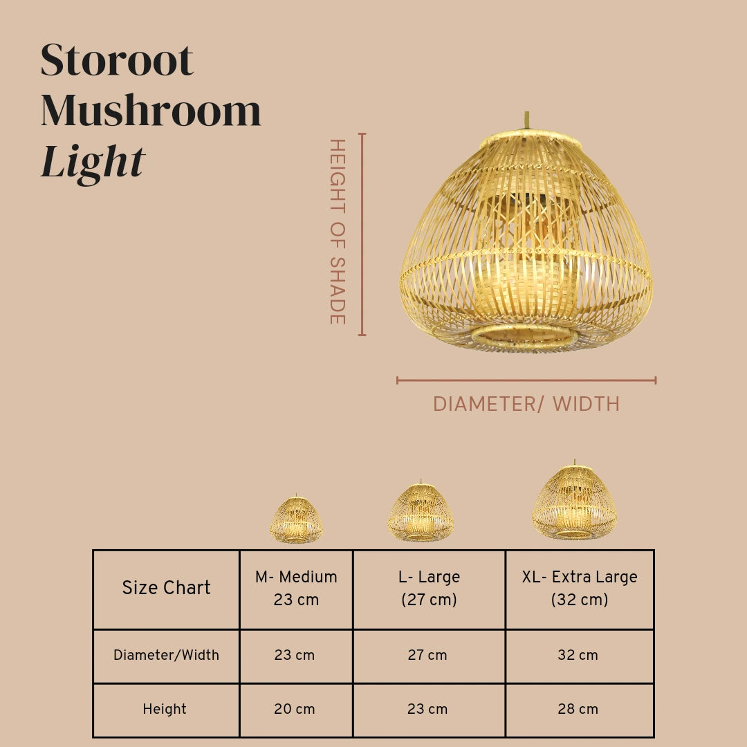 This Mushroom Bamboo pendant light shade is a handcrafted piece from Kerala, made by skilled women artisans. Its unique mushroom shape adds a touch of elegance to any dining area. Made from sustainable bamboo, it is not only a beautiful addition to your home, but also environmentally friendly.