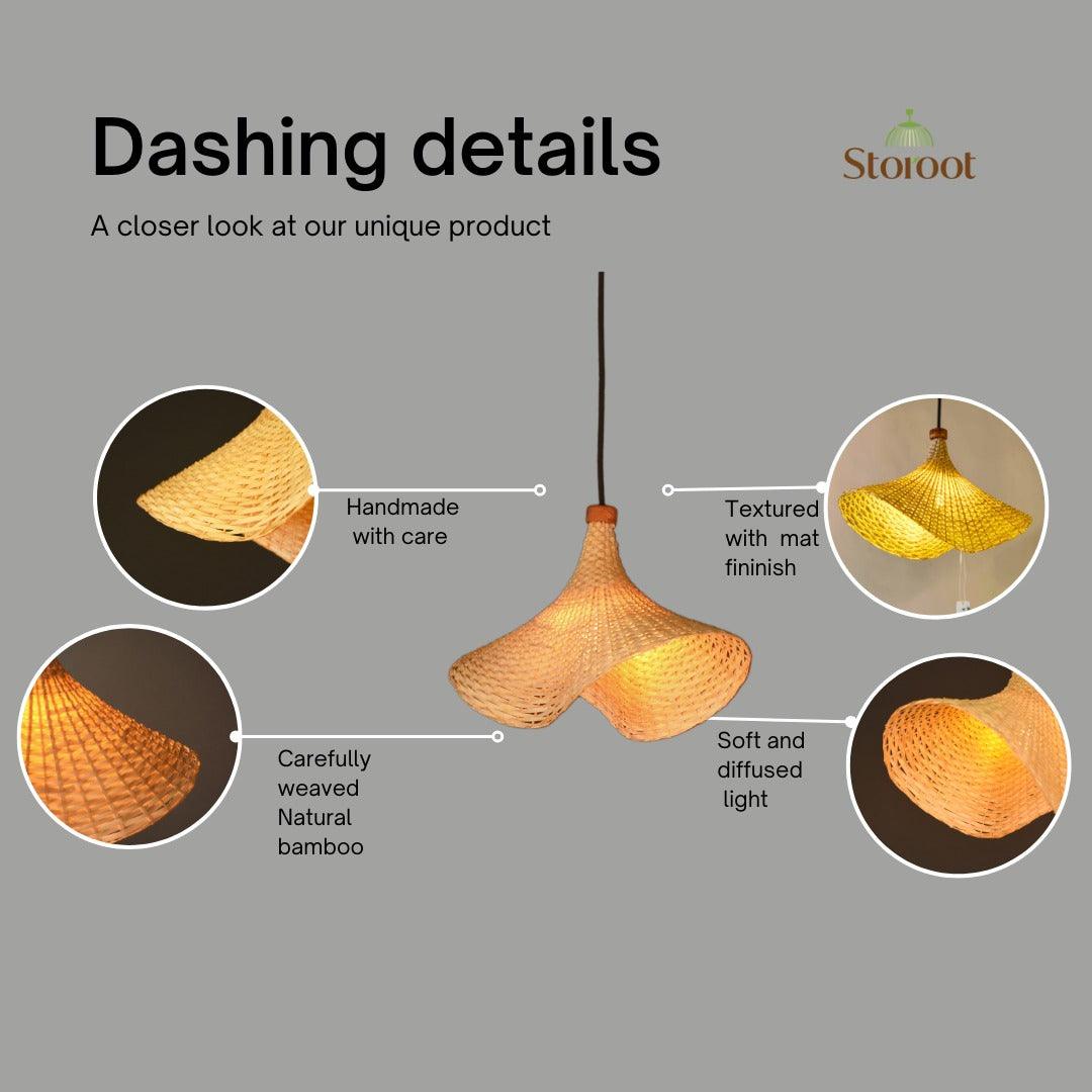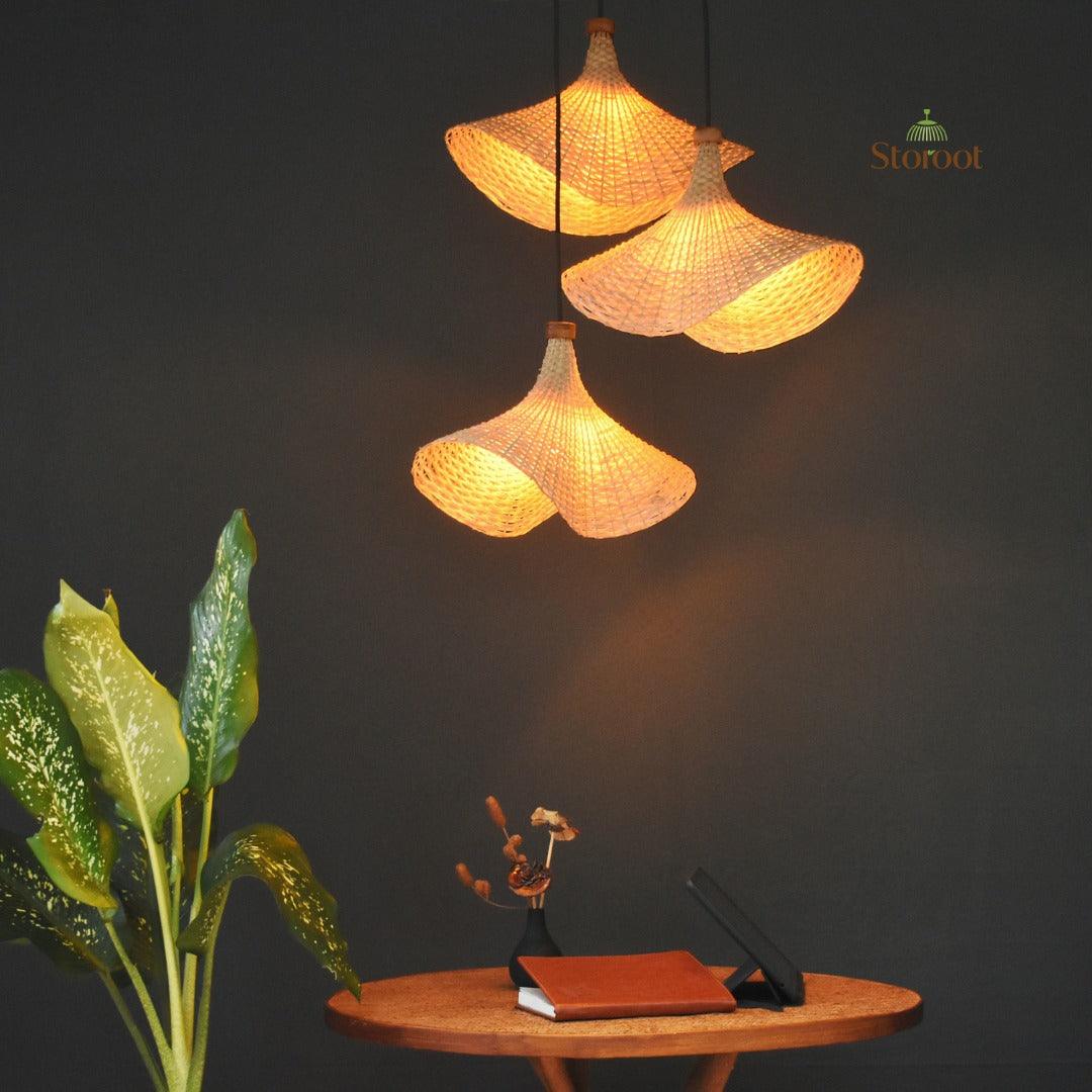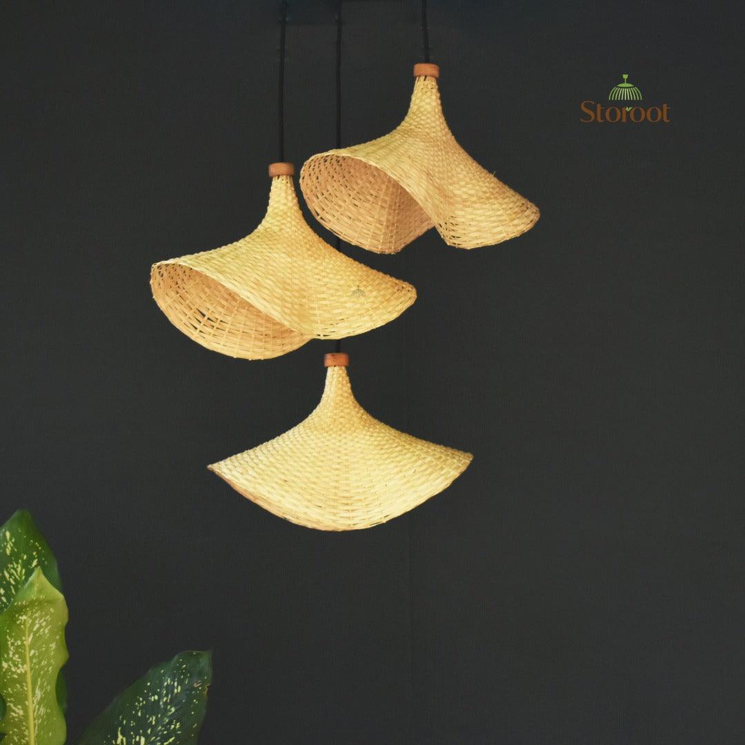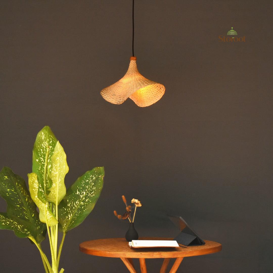 Enhance your space with the Onda Single Handmade Bamboo Pendant Lamp, expertly woven by Kerala artisans. This eco-friendly pendant light adds a warm, natural glow to any room. The finely woven bamboo strips create soft, diffused lighting, perfect for a cozy living room, dining area, or bedroom. Elevate your home decor with this sustainable and elegant bamboo lamp
