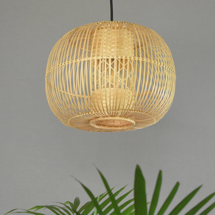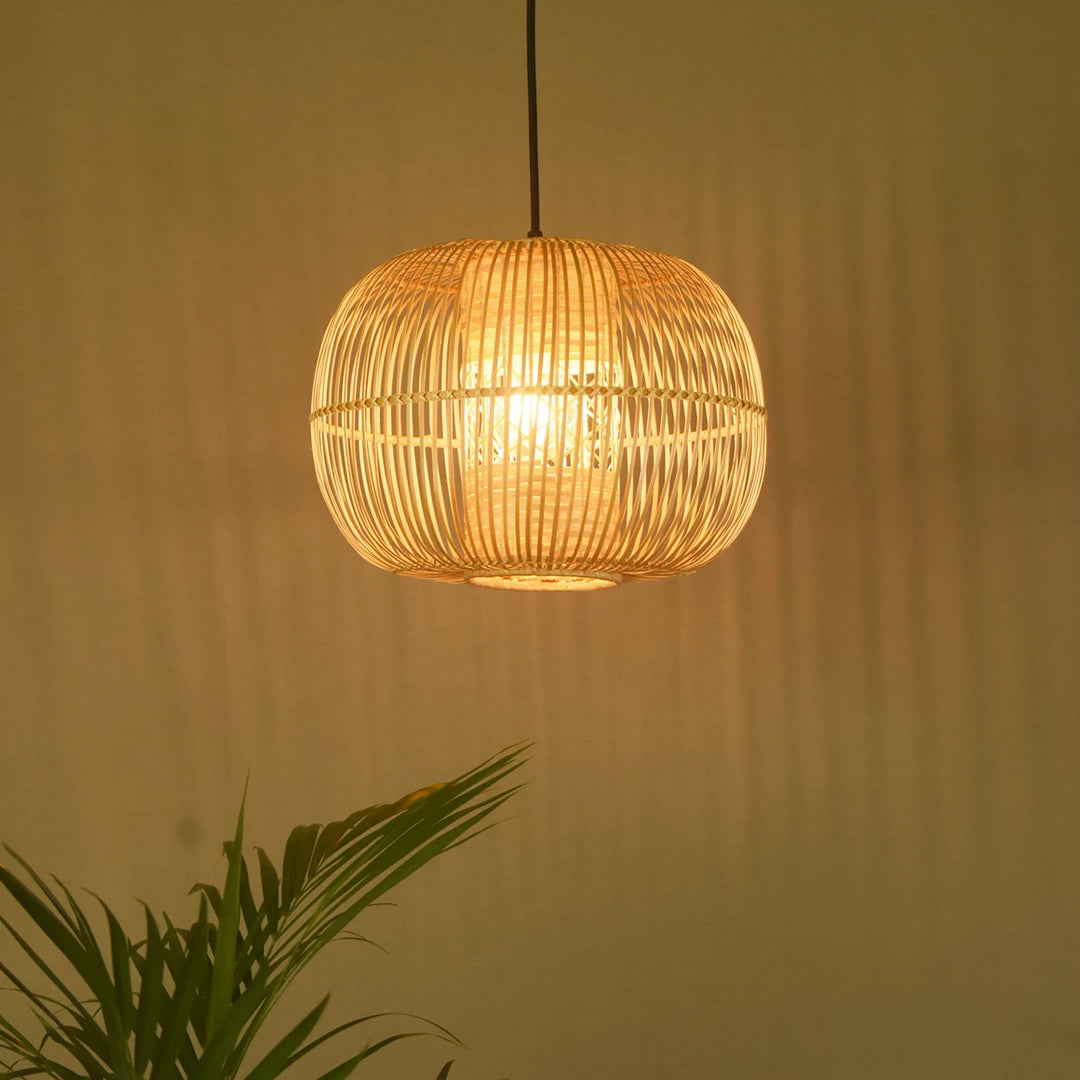 Perfect for adding a touch of organic elegance to any room, the Huba Bamboo Pendant Light casts a warm, inviting glow that enhances the ambiance of living spaces, dining areas, or bedrooms. Its unique, woven design allows light to filter through in a mesmerizing pattern, creating a soothing atmosphere.